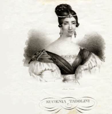 Eugenia Tadolini was an Italian operatic soprano. Admired for the beauty of her voice and stage presence, she was one of Donizetti's favourite singers. During her career she created over 20 leading roles, including the title roles in Donizetti's Linda di Chamounix and Maria di Rohan and Verdi's Alzira.