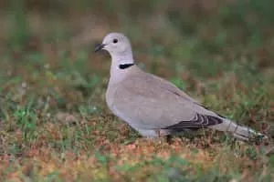 The Eurasian collared dove is a dove species native to Europe and Asia, which has been introduced to North America. Because of its vast global range and increasing population trend, it has been listed as Least Concern on the IUCN Red List since 2014. It is also called collared dove, and spelled Eurasian collared-dove.