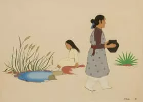 Eva Mirabal, also known as Eah-Ha-Wa was a Native American painter, muralist, illustrator, and cartoonist from Taos Pueblo, New Mexico. Her primary medium was gouache, a type of watercolor.