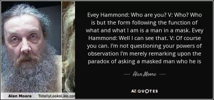 Evey Hammond is a fictional character and the protagonist of the comic book series V for Vendetta, created by Alan Moore and David Lloyd. She becomes involved in V's life when he rescues her from a gang of London's secret police.