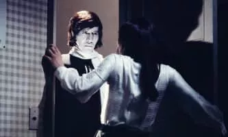 A new schoolteacher (Toshio Kurosawa) chases the vampire principal with a hot poker.