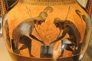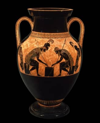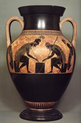 Exekias was an ancient Greek vase painter and potter who was active in Athens between roughly 545 BC and 530 BC. Exekias worked mainly in the black-figure technique, which involved the painting of scenes using a clay slip that fired to black, with details created through incision.