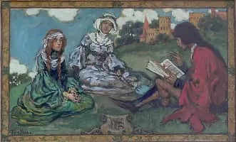 F. Luis Mora, also known as Francis Luis Mora, was a Uruguayan-born American figural painter. Mora worked in watercolor, oils and tempera. He produced drawings in pen and ink, and graphite; and etchings and monotypes.