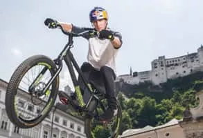 Fabio Wibmer is an Austrian cyclist who mainly practices street trials as well as downhill mountain biking. He is best known for his online street trials videos which are comparable to those by Danny MacAskill. He is sponsored by energy drink company Red Bull.