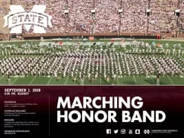 The Famous Maroon Band is the name of the marching band at Mississippi State University in Starkville, Mississippi. The Maroon Band plays at all Mississippi State home football games and sends at least a pep band to a majority of the football away games.