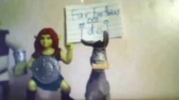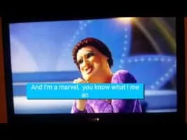Fiona, Puss in Boots (Antonio Banderas), Donkey (Eddie Murphy) and the rest of the Far Far Away Kingdom battle it out in a singing competition.