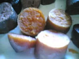 Farinheira is a Portuguese smoked sausage made mainly from wheat flour, pork fat and seasonings. It has a yellow/brown colour and is served in traditional dishes like feijoada or cozido à portuguesa. It is also eaten on its own, roasted or fried.