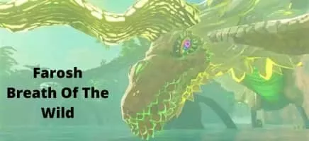 Farosh is a character from The Legend of Zelda: Breath of the Wild. It is one of three spirit dragons, and appears near the Bridge of Hylia, the Floria Bridge, or throughout the Gerudo Highlands region. Every day at night or morning, Farosh will spawn from Riola Spring, fly around, and return to it.