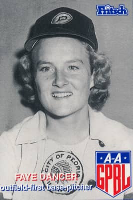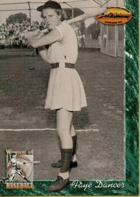 Faye Katherine Dancer was a center fielder who played from 1944 through 1950 for three teams of the All-American Girls Professional Baseball League. Listed at 5 ft 6 in, 145 lb., she batted and threw right-handed.