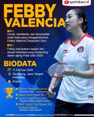 Febby Valencia Dwijayanti Gani is an Indonesian badminton player from Semarang, who affiliate with Djarum club. She won the girls' doubles title at the 2017 Indonesian National Junior Championships.