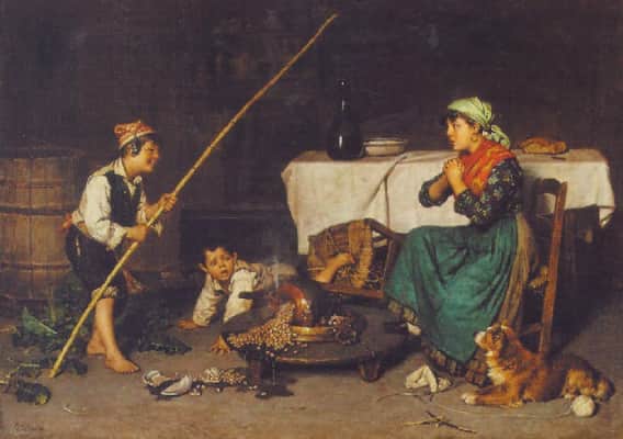 Federico Mazzotta was an Italian painter, mainly of genre subjects, but also historic and Neo-Pompeian themes. He was born in Naples and a resident of Capua. In 1884, at Turin, he exhibited: Un disastro and Un piccolo disastro.