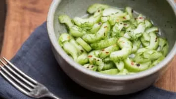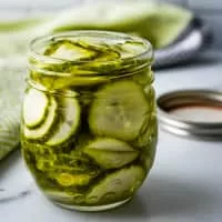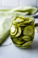 A pickled cucumber is a cucumber that has been pickled in a brine, vinegar, or other solution and left to ferment for a period of time, by either immersing the cucumbers in an acidic solution or through souring by lacto-fermentation. Pickled cucumbers are often part of mixed pickles.