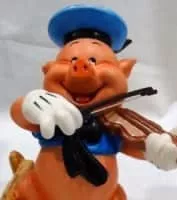 Fiddler Pig is a Disney Character with a Rarity Factor of "No Come". He originated in animated shorts in the 1930s inluding Three Little Pigs and has also appeared in a number of TV shows. He always stars along side Fifer Pig, Practical Pig and Big Bad Wolf.