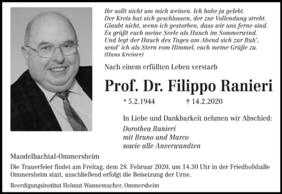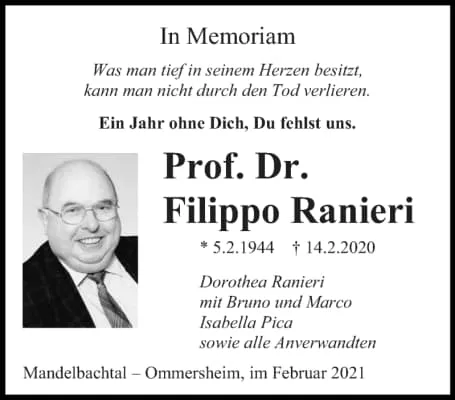 Professor Dr. Filippo Ranieri, a former researcher here at the Institute, died suddenly on 14 February 2020. Upon joining the Max Planck Institute for European Legal History as a researcher (starting in 1974), he was a very committed researcher in the field of European private legal history.