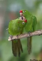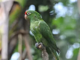 The crimson-fronted parakeet, also known as Finsch's parakeet or Finsch's conure, is a small green Neotropical parrot. It is found in Nicaragua, Costa Rica and western Panama. Its natural habitats are subtropical or tropical moist lowland forest and heavily degraded former forest.