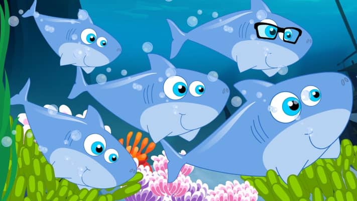 Five Little Sharks Swimming In The Sea
