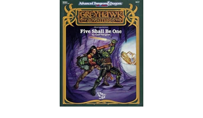 Five Shall Be One is an adventure module for the fantasy role-playing game Dungeons & Dragons, set in the game's World of Greyhawk campaign setting. The module bears the code WGS1 and was published by TSR in 1991 for the second edition Advanced Dungeons & Dragons rules.