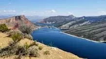Flaming Gorge Reservoir is the largest reservoir in Wyoming, on the Green River, impounded behind the Flaming Gorge Dam. Construction on the dam began in 1958 and was completed in 1964. The reservoir stores 3,788,900 acre feet of water when measured at an elevation of 6,040 feet above sea-level.