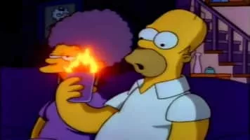 A local bartender becomes rich and famous using Homer's recipe for a flaming drink.