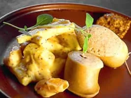 Fläskkorv is a Swedish sausage made largely or entirely from pork. Traditionally it is sold raw, and often served during the Christmas smörgåsbord. A typical accompaniment is rotmos, a dish made from mashed carrots, potatoes and rutabagas.