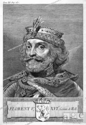 Floris V reigned as Count of Holland and Zeeland from 1256 until 1296. His life was documented in detail in the Rijmkroniek by Melis Stoke, his chronicler.