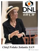 Chief 'Folake Solanke, SAN, CON, is a Nigerian lawyer, administrator, and social critic. She is the first female Senior Advocate of Nigeria and the first Nigerian female lawyer to wear the silk gown as Senior Counsel.