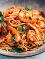 Fra diavolo is a spicy sauce for pasta or seafood. Most versions are tomato-based and use chili peppers for spice, but the term is also used for sauces that include no tomato, or that use cayenne or other forms of pepper.