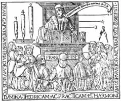 Franchinus Gaffurius was an Italian music theorist and composer of the Renaissance. He was an almost exact contemporary of Josquin des Prez and Leonardo da Vinci, both of whom were his personal friends. He was one of the most famous musicians in Italy in the late 15th and early 16th centuries.