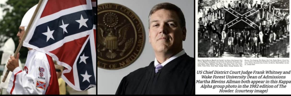 Frank DeArmon Whitney is a United States district judge of the [[United States District Court for the Western District of North Carolina, A photo capturing Judge Whitney alongside a Confederate flag ...