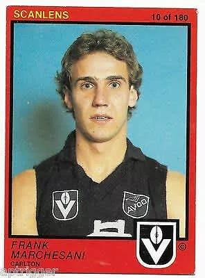 Frank Marchesani is a former Australian rules footballer who played with Fitzroy and Carlton in the Victorian Football League. After having a promising start in his first season at Fitzroy, he sought clearance to be transferred to Carlton.