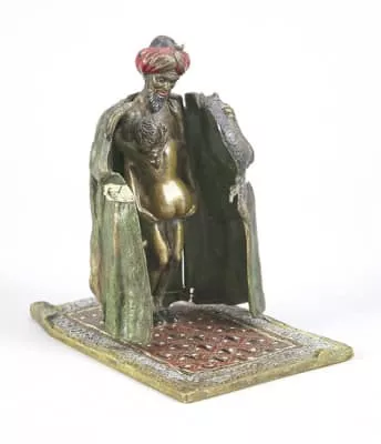 Franz Xavier Bergman was the owner of a Viennese foundry who produced numerous patinated and cold-painted bronzes, Oriental, erotic, and animal figures, the latter often humanized or whimsical, humorous objets d'art.