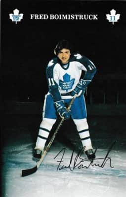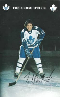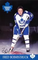 Frederick Michael Boimistruck, Jr. is a Canadian retired ice hockey defenceman. He played in the NHL for the Toronto Maple Leafs. Born in Sudbury, Ontario, Boimistruck grew up in Capreol, Ontario. He played junior ice hockey for the Cornwall Royals, playing twice for the Memorial Cup.
