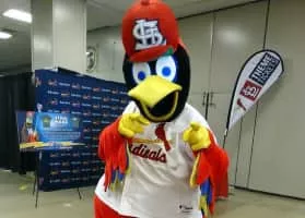 Fredbird is the official mascot for the St. Louis Cardinals major league baseball team. He is an anthropomorphic cardinal wearing the team's uniform. Fredbird can always be found entertaining young children during baseball games at Busch Stadium.