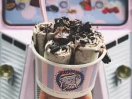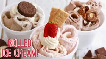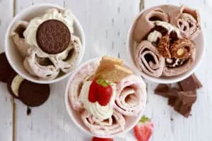 Stir-fried ice cream, also known as rolled ice cream, is a sweetened frozen dessert. It is made using milk, cream, and sugars as well as other added ingredients to increase the flavour.