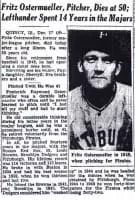 Frederick Raymond "Fritz" Ostermueller was a pitcher in major league baseball from 1934 to 1948 for the Boston Red Sox, St. Louis Browns, Brooklyn Dodgers, and Pittsburgh Pirates.