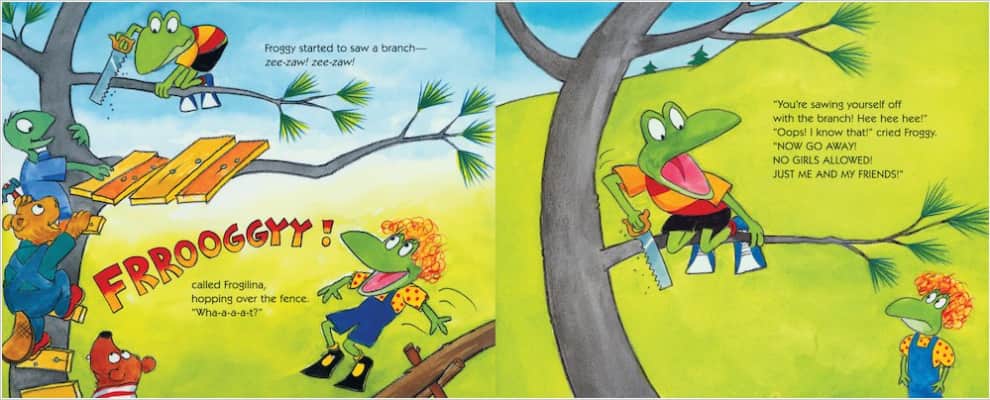 Froggy and his friends are building a treehouse-with a lot of help from Dad. Their plans don't include Frogilina though, "Boys Only!" says Froggy. But in the end, it's Frogilina who saves the day and joins the treehouse gang. Lovable Froggy returns in his 22nd laugh-out-loud adventure.