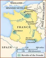 The Fronde was a series of civil wars in France between 1648 and 1653, occurring in the midst of the Franco-Spanish War, which had begun in 1635. King Louis XIV confronted the combined opposition of the princes, the nobility, the law courts, and most of the French people, and yet won out in the end.