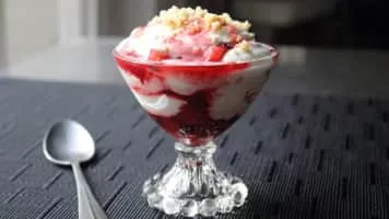 A fool is an English dessert. Traditionally, fruit fool is made by folding pureed stewed fruit into sweet custard. Modern fool recipes often skip the traditional custard and use whipped cream. Additionally, a flavouring agent like rose water may be added.