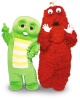 Gachapin is a TV character who appeared in the children's program Hirake! Ponkikki and its succeeding series, Ponkickies on Fuji TV. He is a green, bucktoothed dinosaur and is usually accompanied by his friend Mukku, a red Yeti.