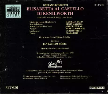 Gaetano Donizetti Elisabetta Al Castello Di Kenilworth