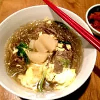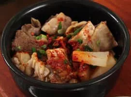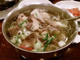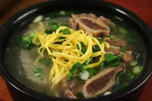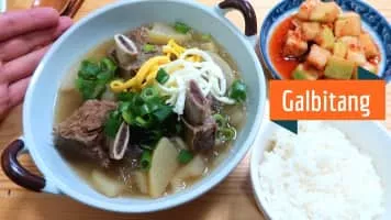 Galbi-tang or short rib soup is a variety of guk, or Korean soup, made primarily from beef short ribs along with stewing beef, radish, onions, and other ingredients. The short ribs, or "galbi" also refers to grilled short ribs in Korean barbecue while the suffix tang is another name for guk.