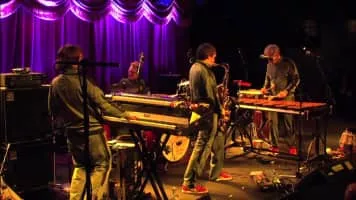 Garage A Trois is an American jazz quartet including drummer Stanton Moore, saxophonist Skerik, vibraphone and percussionist Mike Dillon and keyboardist Marco Benevento. They play a variety of music including rock, funk and jazz.