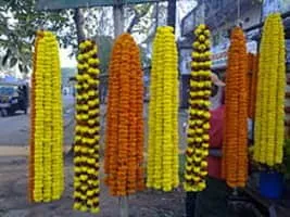 A garland is a decorative wreath of flowers, leaves, or other material. Garlands can be worn on the head or around the neck, hung on an inanimate object, or laid in a place of cultural or religious importance.