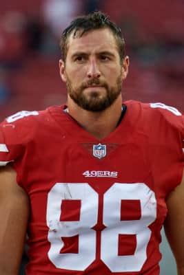 Garrett Bartholomew Celek is a former American football tight end who played his entire career for the San Francisco 49ers of the National Football League. He played college football at Michigan State. Celek signed with the 49ers as an undrafted free agent on May 4, 2012.