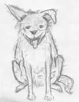 Gaspode is described as a small, bow-legged and wiry terrier-like dog, 'basically grey (in colour) with patches of brown, white and black in outlying areas'. He is featured in seven of Terry Pratchett's Discworld novels.