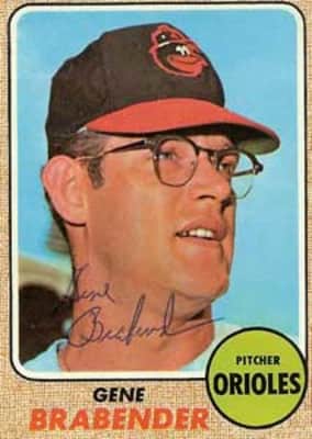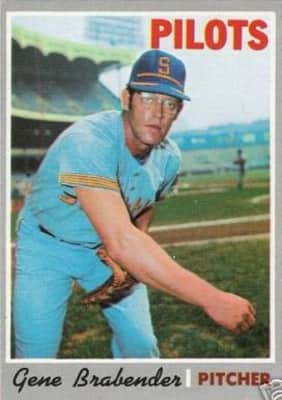 Eugene Mathew Brabender, nicknamed Lurch, was an American Major League Baseball pitcher. He was signed by the Los Angeles Dodgers as an amateur free agent before the 1961 season. He also was a member of the US Army from 1963 to 1964. He pitched for the Baltimore Orioles, Seattle Pilots / Milwaukee Brewers.