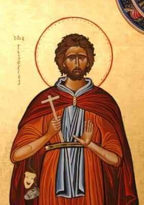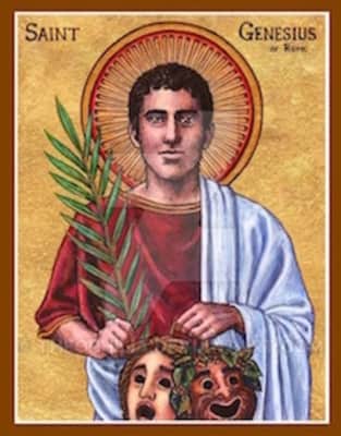 Genesius of Rome is a legendary Christian saint, once a comedian and actor who had performed in plays that mocked Christianity. According to legend, while performing in a play that made fun of baptism, he had an experience on stage that converted him.