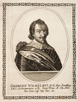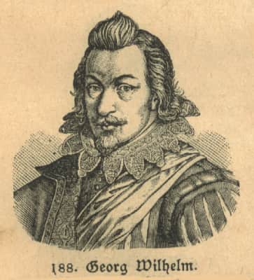 George William, of the Hohenzollern dynasty, was Margrave and Elector of Brandenburg and Duke of Prussia from 1619 until his death. His reign was marked by ineffective governance during the Thirty Years' War. He was the father of Frederick William, the "Great Elector".