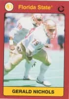 Gerald William Nichols is a former American football defensive lineman in the National Football League for the New York Jets, Tampa Bay Buccaneers, Philadelphia Eagles, and the Washington Redskins. He played college football at Florida State University and was drafted in the seventh round of the 1987 NFL Draft.