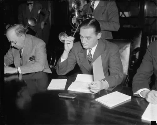 Gerald Prentice Nye was an American politician who represented North Dakota in the United States Senate from 1925 to 1945. He was a Republican and supporter of World War II-era isolationism, chairing the Nye Committee which studied the causes of United States' involvement in World War I.